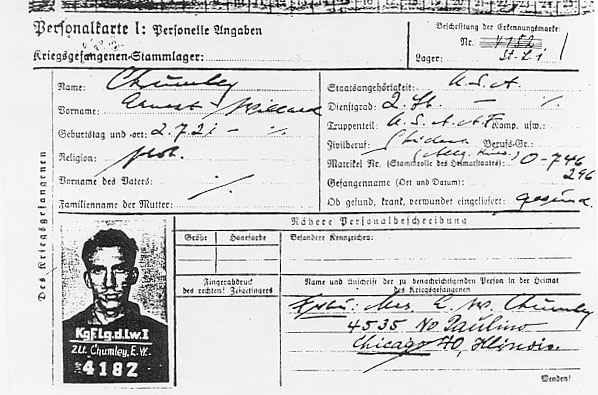 His face had hit the nose wheel as he had bailed out of a B-24. Anyway he